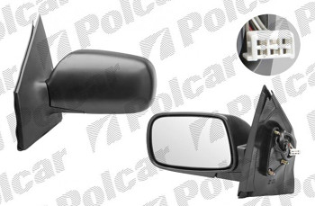 Zpětné zrcátko pro TOYOTA YARIS (XP10), 04.2002-12.2005   Barva černá, ovládání elektrické, sklo vyhřívané čiré 5-pinový konektor ...