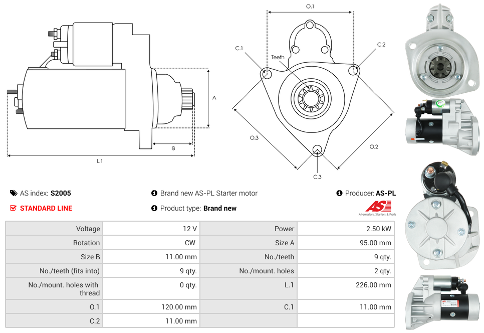 Výkon: 2.5kW, Počet zubů (zapadá do): 9, Otáčení CW
